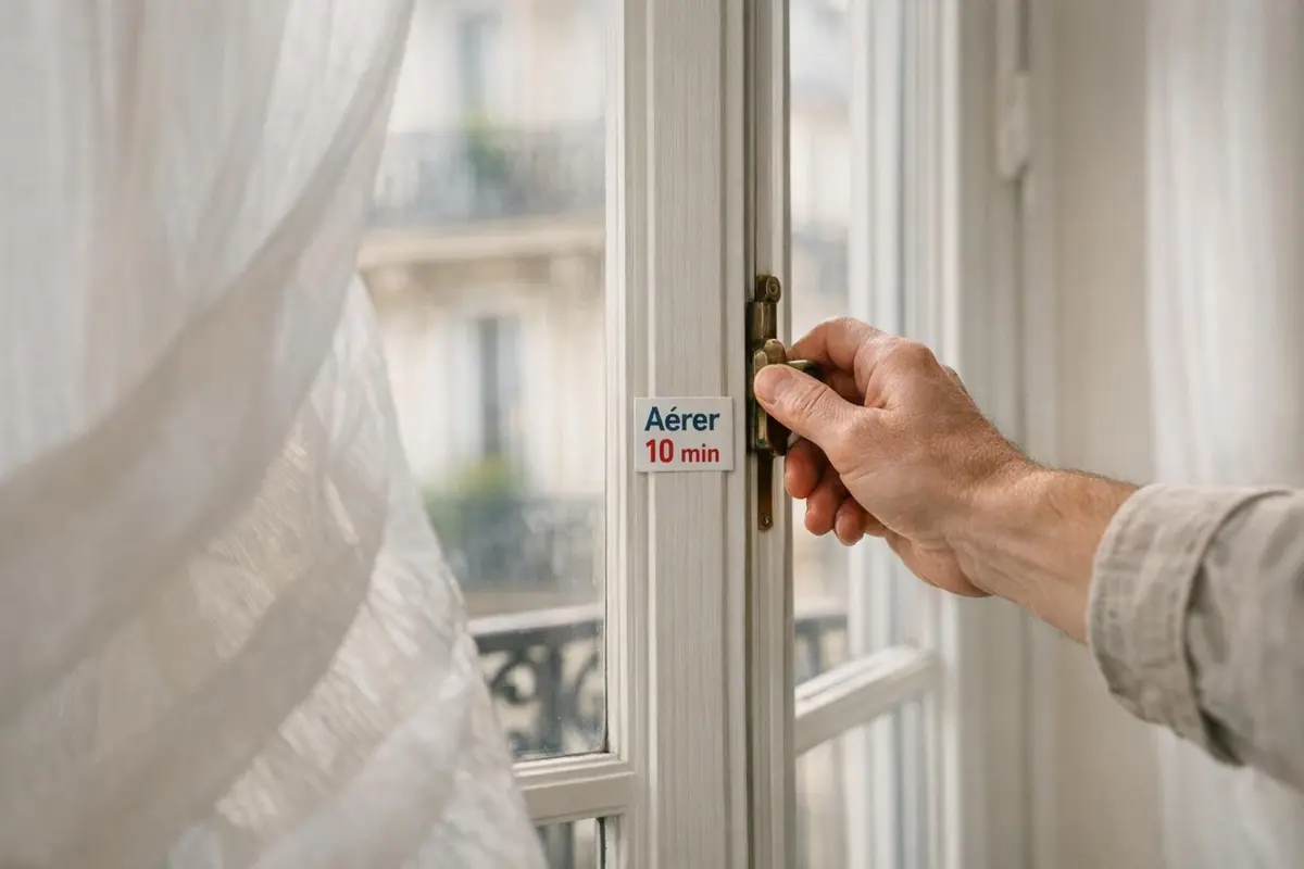 Le geste salvateur consiste à ouvrir en grand deux ouvertures opposées – fenêtre de chambre et porte du salon, par exemple – afin de créer un véritable courant d’air. Dix minutes suffisent pour renouveler environ 80 % de l’air d’un appartement de 70 m², sans faire chuter durablement la température, car les murs et le mobilier restituent la chaleur accumulée.